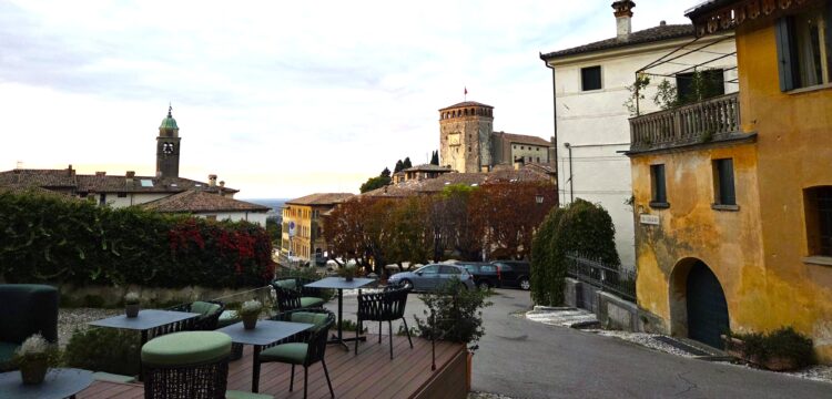 Wandering along the cobbled streets, I was drawn into several attractive, upscale clothing shops—though I managed to rein myself in and only splurged on one silk scarf. The town’s shops are interspersed with significant buildings such as a museum, a medieval cathedral and tower, a former abbey, and the homes of famous people including English poet Robert Browning and Italian actress Eleanora Duse. At the back of one of the historic buildings is the unpretentious Bar al Castello, a wonderful setting for lunch or end-of-day cocktails, out on the inviting terrace with a view over the whole valley.