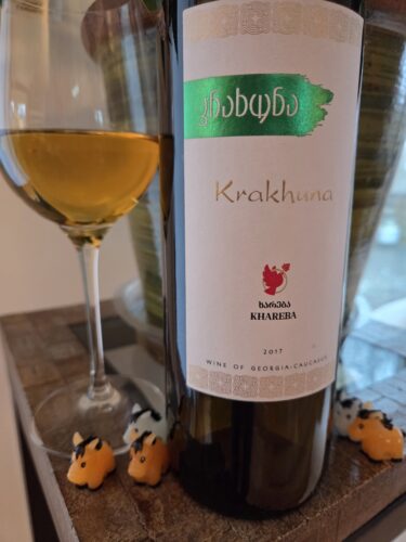 Though I’ve visited a number of Georgian wineries in the past, I’m grateful to the Khareba winery for including a pronunciation guide on the label for this white grape called krakhuna:“cra-who-nah.”